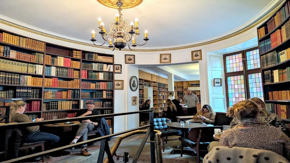 2. Paludan Bog & Café is located on Fiolstræde, right across from the University of Copenhagen. This spot is a quintessential academic haunt where the scent of old books mixes with the aroma of freshly roasted coffee.